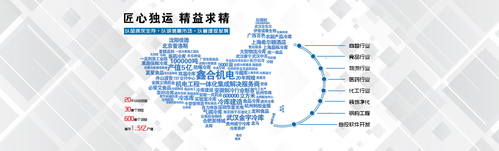 安徽鑫合機(jī)電設(shè)備有限公司于2002年組建運(yùn)營(yíng),專(zhuān)業(yè)從事冷凍、冷藏庫(kù)、中央空調(diào)、醫(yī)藥凈化工程的規(guī)劃設(shè)計(jì)、施工承建、售后服務(wù)為一體的綜合性工程公司,與100多家實(shí)力雄厚的大中型企業(yè)建立長(zhǎng)期產(chǎn)略合作關(guān)系,其中有多家世界500強(qiáng)和上市企業(yè)。公司作為中國(guó)倉(cāng)儲(chǔ)與配送協(xié)會(huì)會(huì)員單位、安徽省制冷學(xué)會(huì)理事單位、上海楊浦區(qū)制冷協(xié)會(huì)工程總承包負(fù)責(zé)單位,引領(lǐng)于行業(yè)前沿。我們將銘記給予我們大力支持的各界新老朋友及合作伙伴,我們將會(huì)保持“互惠互利、共同發(fā)展”的原則與您共創(chuàng)雙嬴的合作關(guān)系。